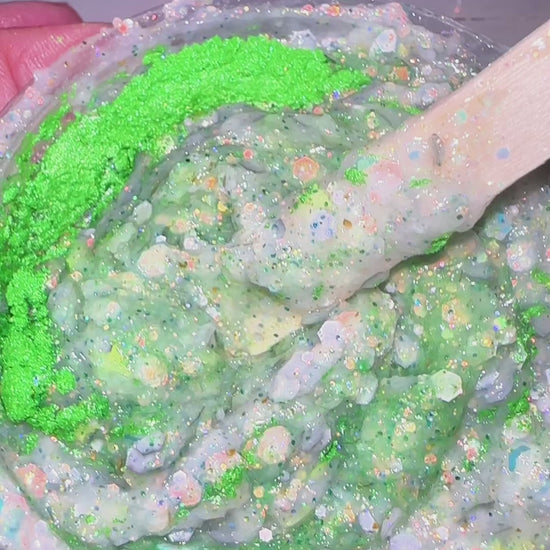 Frankentears UV Activated Glitter Gel Eyeshadow, named by Rebecca Mahoney, boasts a mesmerizing light green holographic color that is bound to captivate onlookers!